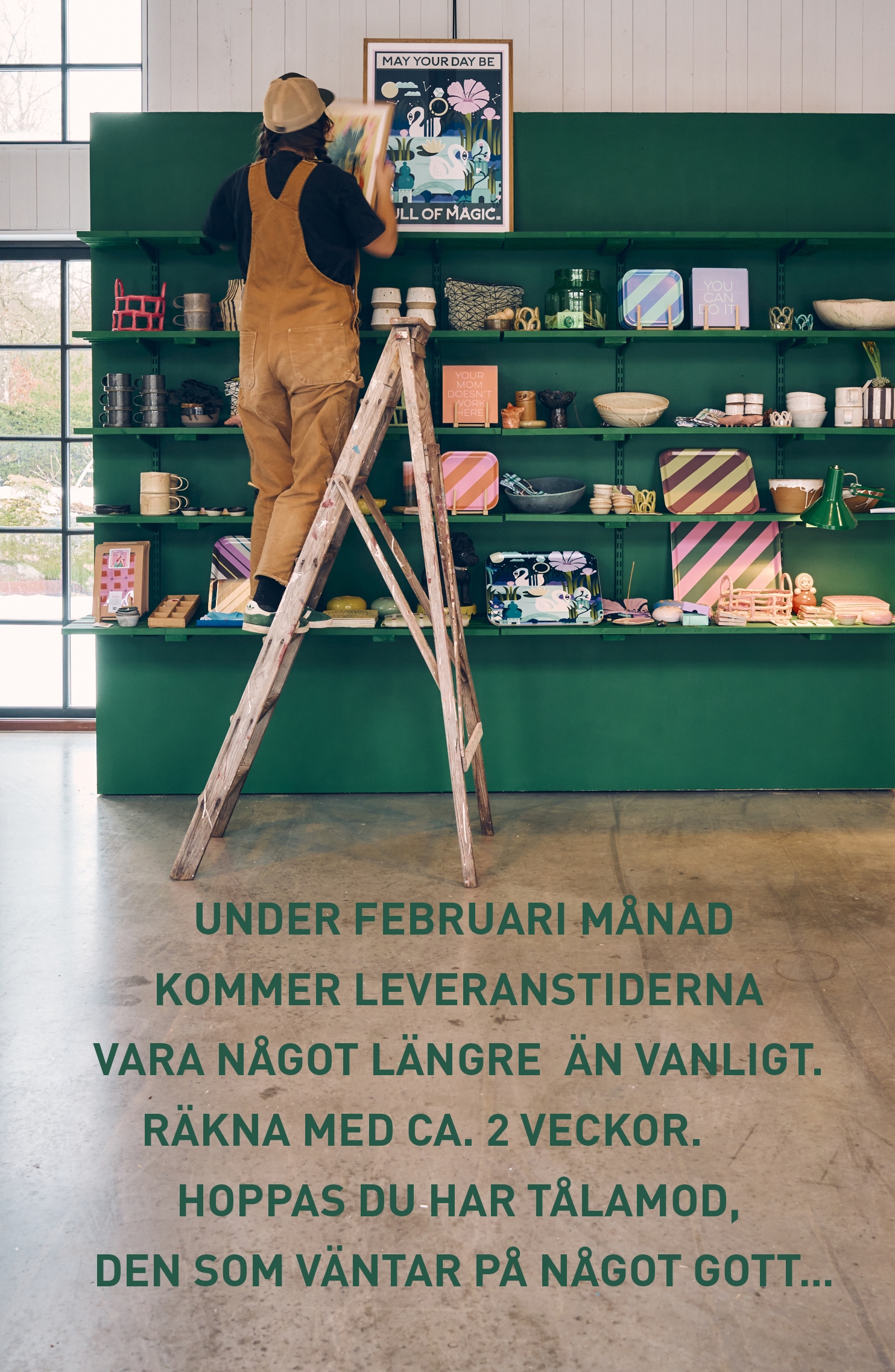 Under februari månad kommer leveranstiderna vara något längre än vanligt. Räkna med ca 2 veckor. Hoppas du har tålamod, den som väntar på nåt gott…// Linda Pabst