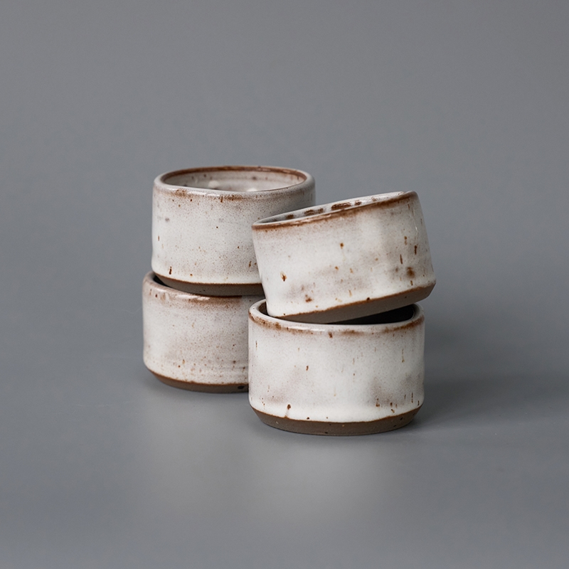 En perfekt present till espresso älskaren. Handdrejade rustika muggar. Drejade i återvunnen lera och glaserad i en vit blank glasyr. Rymmer ca 50 ml (en enkel espresso) Man kan så klart använda det som värmeljushållare eller till glöggen till jul. Storlek ca. 6 cm i diameter, höjd 4 cm. Går bra att diska i maskin.